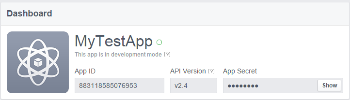 12. Then, you will want to click on the "Dashboard" link to take you to the app dashboard. You will see that your app now has an "App ID" and an "App Secret". You will need to add the APP ID to your Android App.